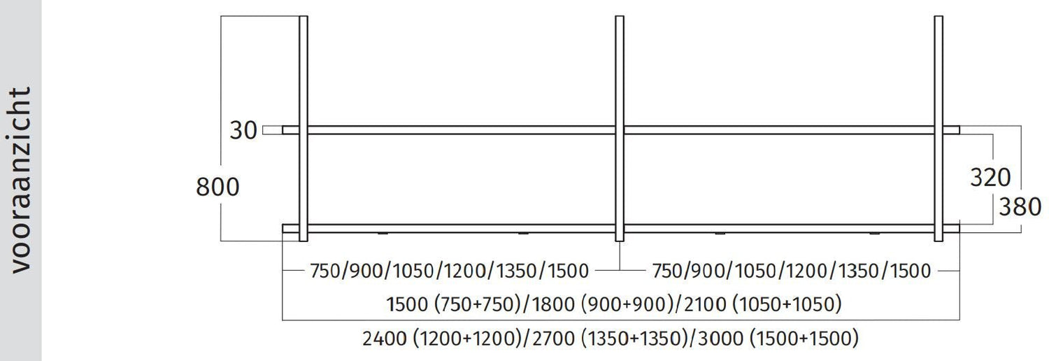 Wave 2053.70 FRAME sans moteur - Modèle îlot 150 cm en acier inoxydable - 4 x 4,2 W LED dimmables 2700 Kelvin