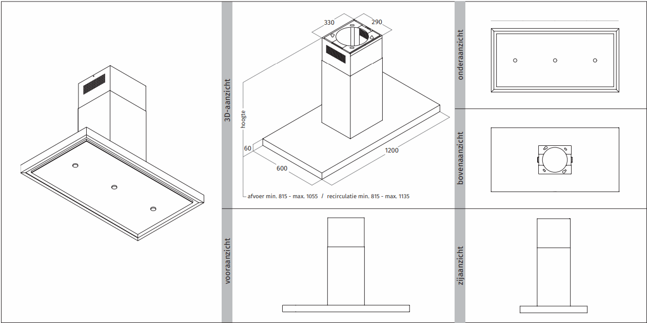 Informations complémentaires Wave 2066304 Hotte aspirante îlot T-SHAPE avec éclairage LED
