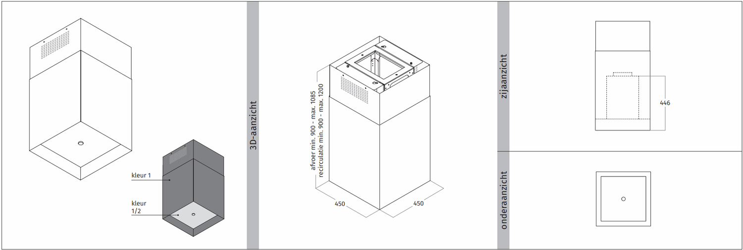 moteur interne 850 m3/h - 58 dBA - max. 250 W - décharge ∅150 mm