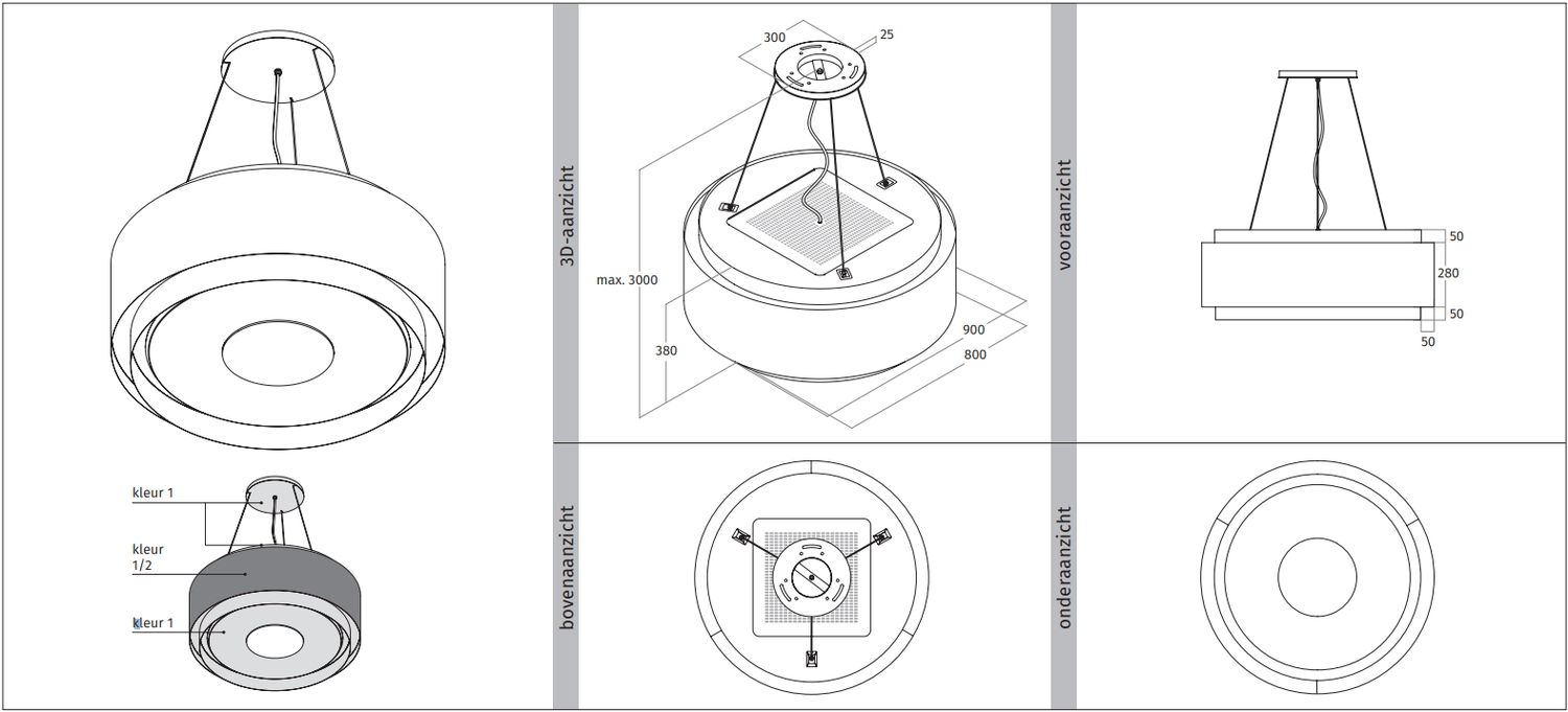 espace entre le bas du modèle et le plan de travail minimum 650 mm - maximum 900 mm