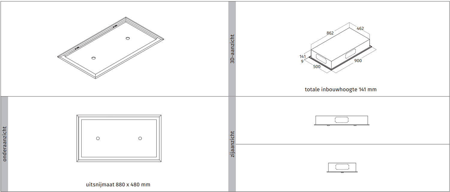 raccord d'évacuation sur 2 côtés (230 x 80 mm) et dessus d'évacuation ∅ 150 mm