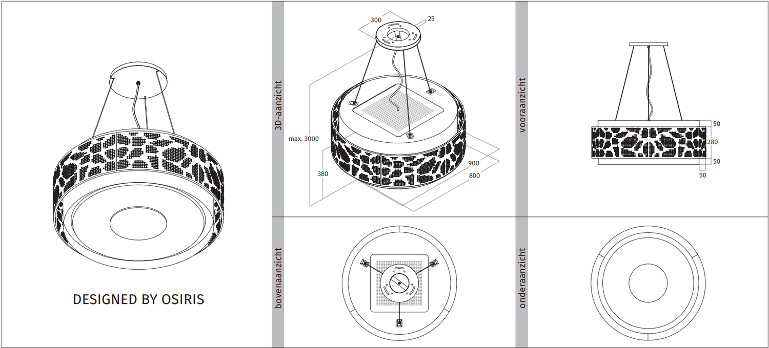Aanvullende informatie van de 2680.302 CLOUD eilandlamp afzuigkap RAL 9017 mat (zwart)